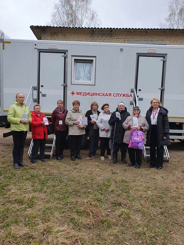Страховые представители Филиала – Главный специалист – страховой представитель 2 уровня и специалист отдела сопровождения застрахованных лиц - страховой представитель 2 уровня Быкова Наталия Ивановна совместно с медицинскими работниками Дорогобужской ЦРБ 15 апреля 2026г. выехали в Усвятскую врачебную амбулаторию в селе Усвятье Дорогобужского района Смоленской области с целью сопровождения застрахованных при проведении диспансеризации взрослого населения.