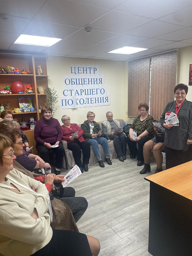 Директор АСП ООО «Капитал МС» - Филиал в Смоленской области Бердникова Лидия Васильевна 17 октября 2025г. провела беседу в Центре общения старшего поколения в пгт Красный при Отделении СФР по Смоленской области. Цель встречи - информирование застрахованных о правах граждан в системе обязательного медицинского страхования на получение бесплатной медицинской помощи. Доведена информация о деятельности страховых представителей всех уровней. Директор филиала проинформировала жителей о порядке прохождения диспансеризации, углубленной диспансеризации, а также защите законных прав и интересов застрахованных. Информировала о поводах для обращения к страховому представителю.