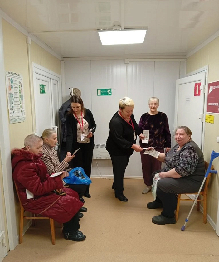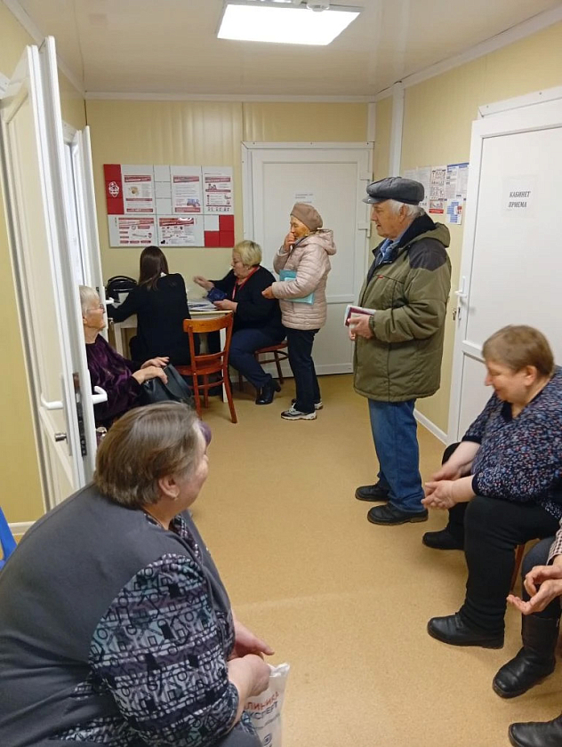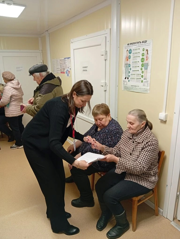 Страховые представители Филиала – специалист ОС ЗЛ - страховой представитель 2 уровня Круглова Светлана Владимировна и главный специалист ОС ЗЛ - страховой представитель 2 уровня Соболева Анна Станиславовна 09 апреля 2026 года сопровождали застрахованных на выезде мобильной бригады медиков с целью проведения профилактических мероприятий в деревне Пересна Починковского района Смоленской области.