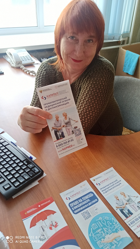 Всем присутствующим на мероприятии были вручены печатные справочные материалы по вопросам обязательного медицинского страхования: "Страховые представители-менеджеры здоровья", "Памятка застрахованному лицу", "Профилактический медицинский осмотр и диспансеризация", "Право на помощь в онкодиспансере: своевременную и доступную".
