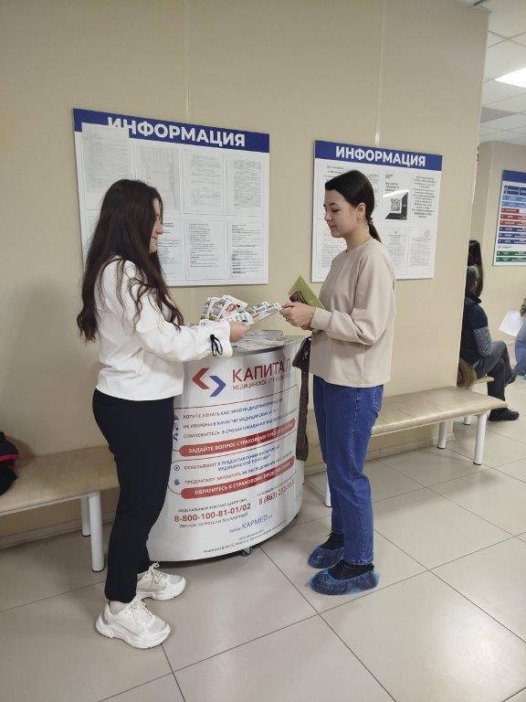 16 февраля 2026 года представитель СМО 2-го уровня офиса в Неклиновском районе АСП ООО «Капитал МС» - Филиала в Ростовской области Бондаренко Е.С. провела информационную работу с посетителями поликлиники ГБУ РО «ЦРБ» Неклиновского района в с. Покровское.