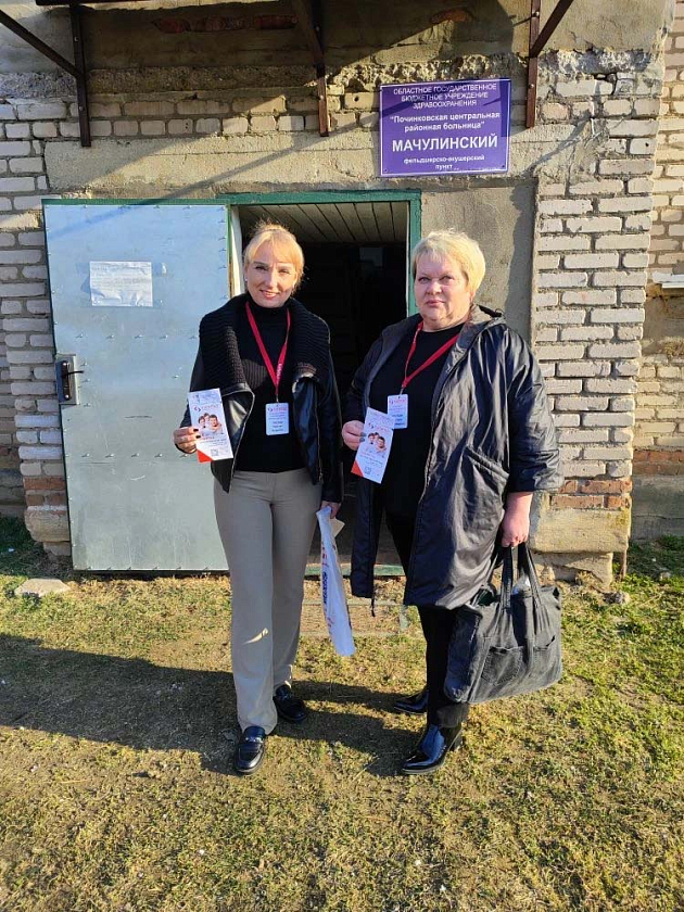 Представители СМО Филиала – начальник отдела сопровождения застрахованных лиц Гурская Наталья Игоревна и специалист ОС ЗЛ - страховой представитель 2 уровня Круглова Светлана Владимировна 26 марта 2026 года сопровождали застрахованных на выезде мобильной бригады медиков с целью проведения ДВН, профилактических осмотров и углубленной диспансеризации в Мачулинском фельдшерско-акушерском пункте в деревне Мачулы Починковского района Смоленской области. Заранее было организовано индивидуальное информирование о возможности прохождения указанных профилактических мероприятий.