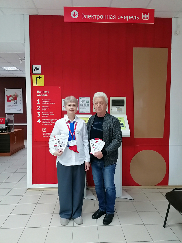 Страховой представитель на встрече рассказала о том, что важно вовремя проходить диспансеризацию и профилактические медицинские осмотры. Они помогают выявить риск развития болезни на ранних стадиях, увеличить продолжительность жизни, сохранить и укрепить здоровье. Представитель ответила на вопросы посетителей и сотрудников МАУ МФЦ. Вручила каждому памятки и буклеты.