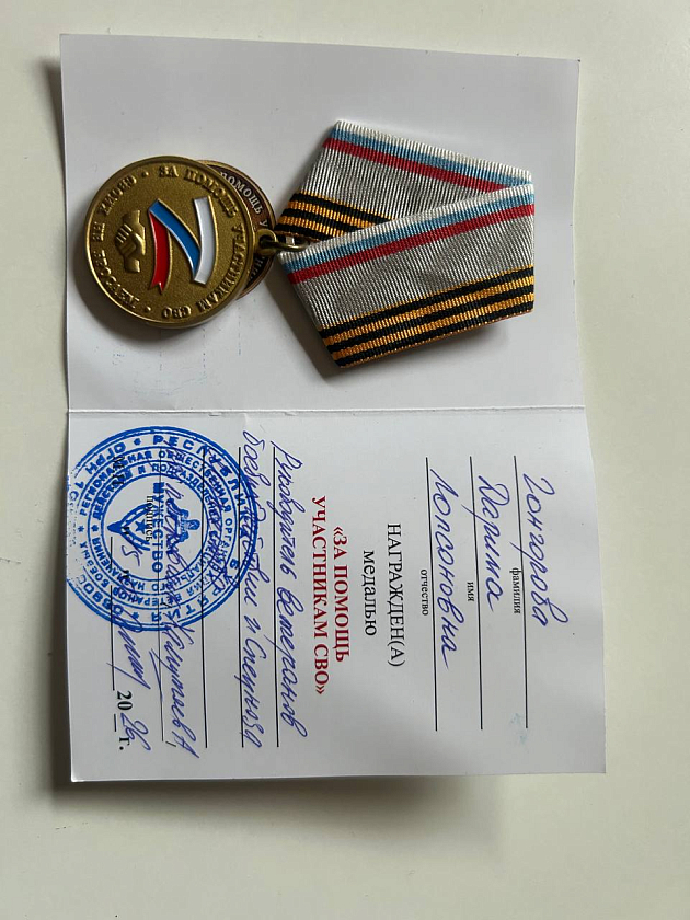 За свою самоотверженную помощь фронту они получили почетный "Знак общественного признания". Это заслуженная награда за ваше доброе сердце и золотые руки. От всей души желаем вам крепкого здоровья, сил и вдохновения. И, конечно, верим и ждем скорейшего возвращения наших героев домой!