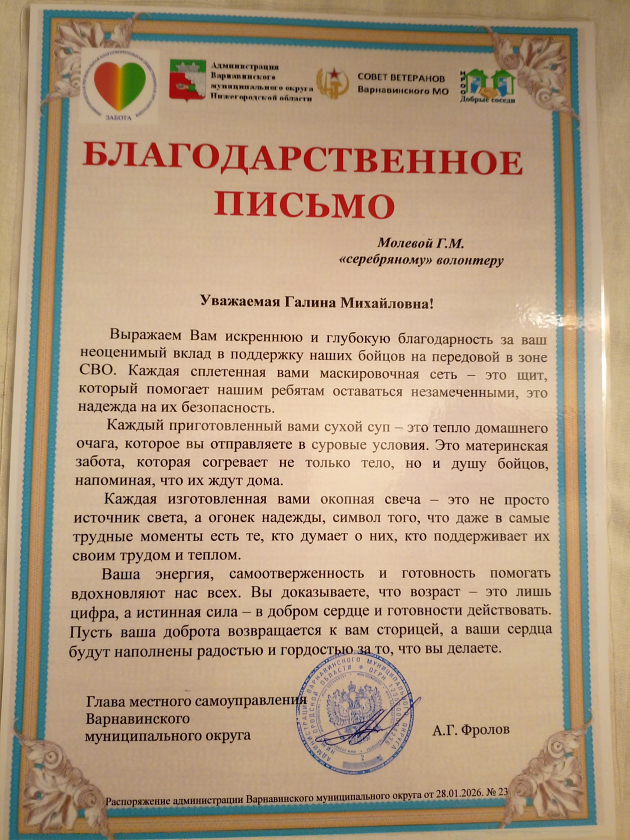 30 января 2026 года в Администрации Варнавинского муниципального округа Нижегородской области состоялась торжественная церемония награждения волонтеров и активистов.