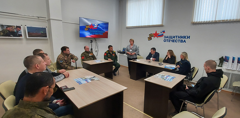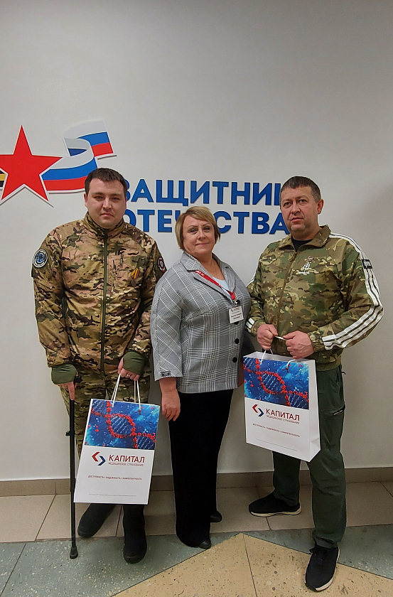 В преддверии праздника Дня защитника Отечества 19 февраля на базе филиала Государственного фонда поддержки участников специальной военной операции «Защитники Отечества» по Ульяновской области состоялась встреча ветеранов специальной военной операции с представителями Управления Федеральной службы судебных приставов по Ульяновской области и Общероссийского общественного государственного движения детей и молодёжи «Движение Первых». Заместитель директора филиала Бахапова Екатерина Николаевна проинформировала присутствующих об особых условиях реализации прав граждан в системе обязательного медицинского страхования для ветеранов боевых действий, на внеочередное оказание медицинской помощи в рамках программы государственных гарантий, медицинской реабилитации, необходимости прохождения диспансеризации, а также о работе контакт - центра филиала с указанием номера телефона «горячей линии» для обращений, ответила на поступившие вопросы. В канун Дня защитника Отечества, она от имени филиала и себя лично тепло и сердечно поздравила ветеранов с наступающим праздником, пожелала крепкого здоровья, мужества и отваги, спокойствия в душе, любви и теплоты семейного очага, твёрдости во всех решениях и вручила памятные подарки от компании ООО «Капитал МС».