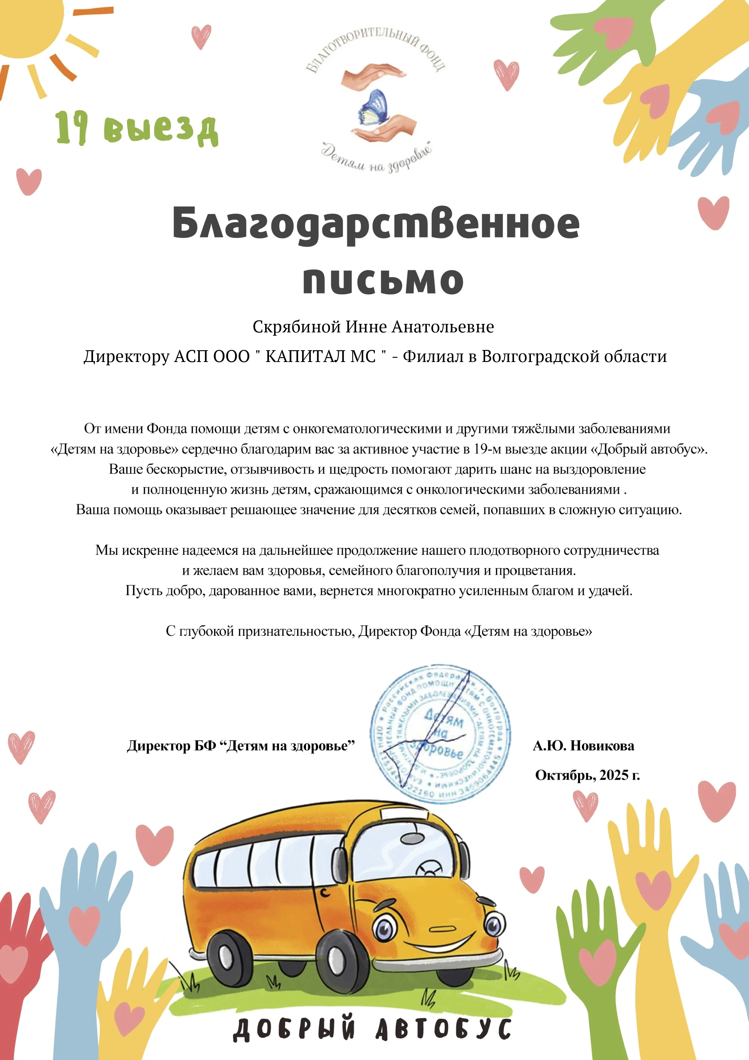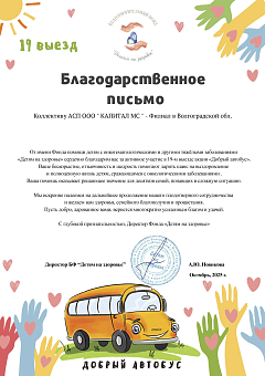 Благодарственное письмо от НКО БФ Детям на...