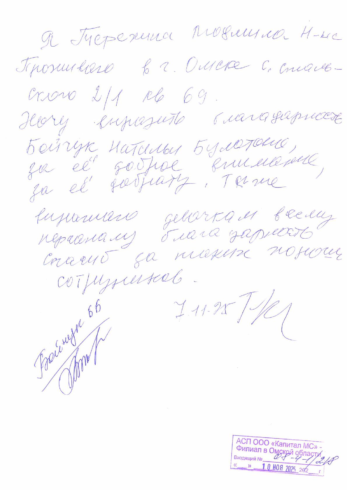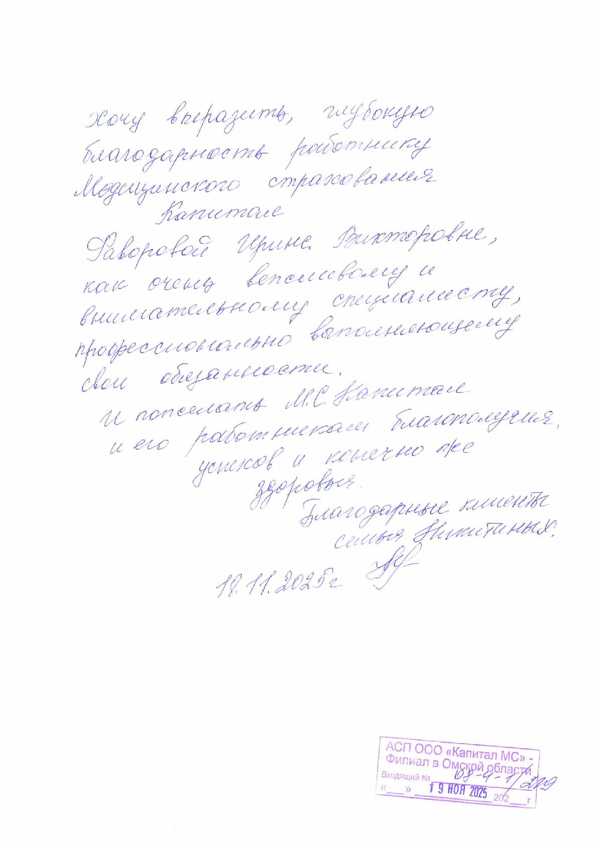 Благодарность от семьи Никитиных