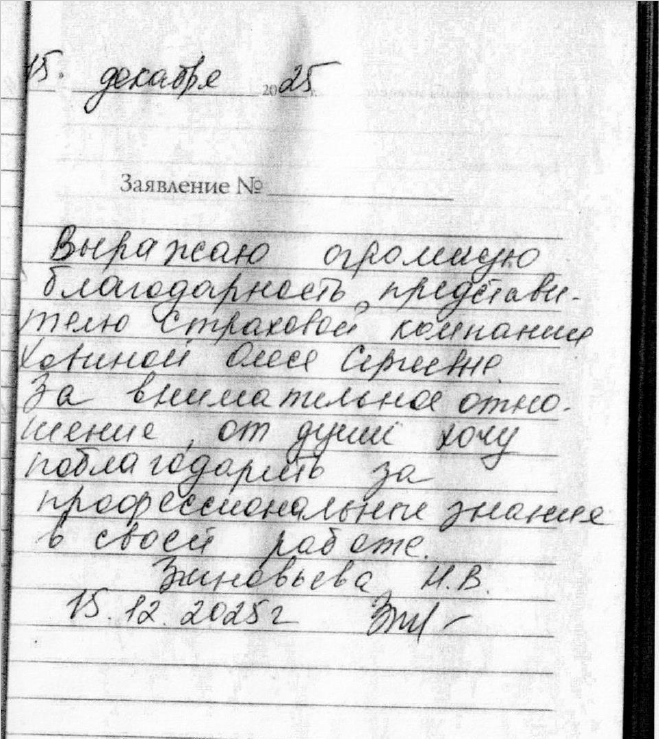 Благодарность Зиновьева