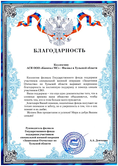 Благодарность коллективу АСП ООО «Капитал МС»...