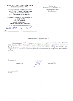 Благодарность Администрации ГБУЗ "Городская...