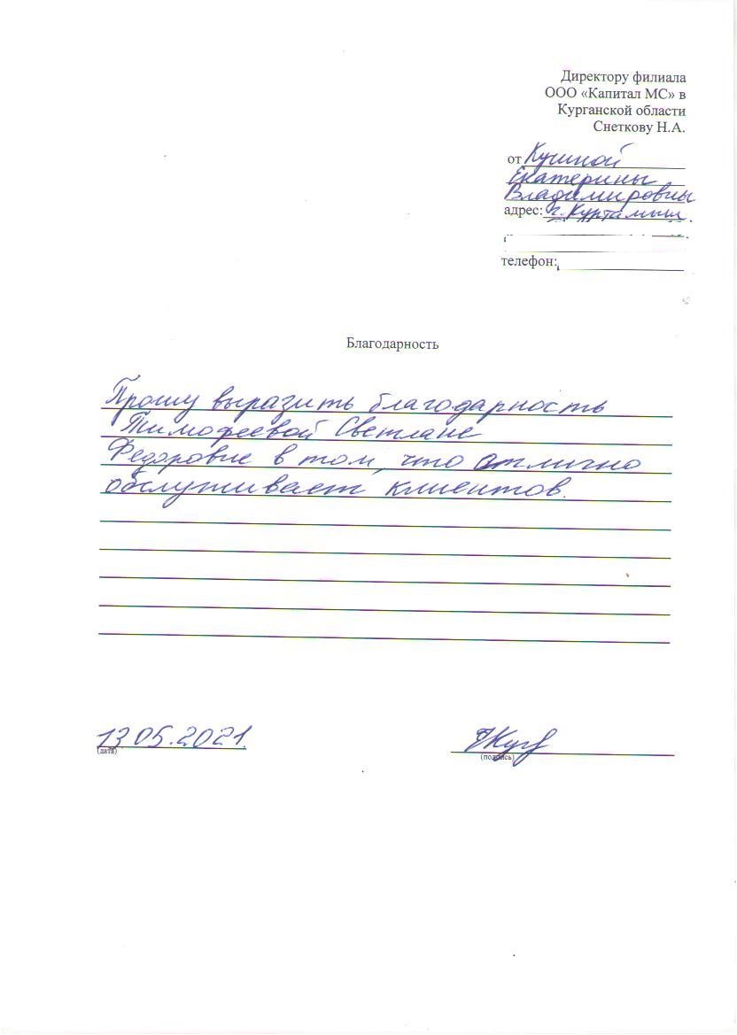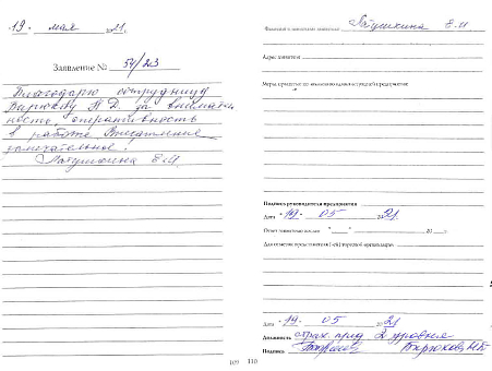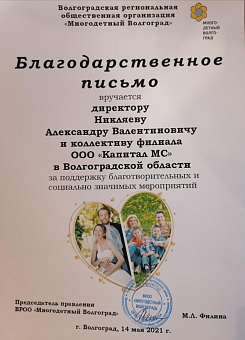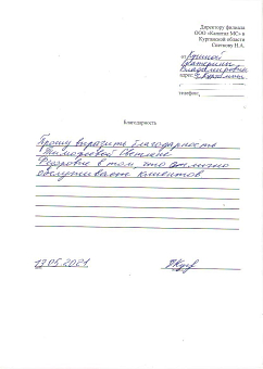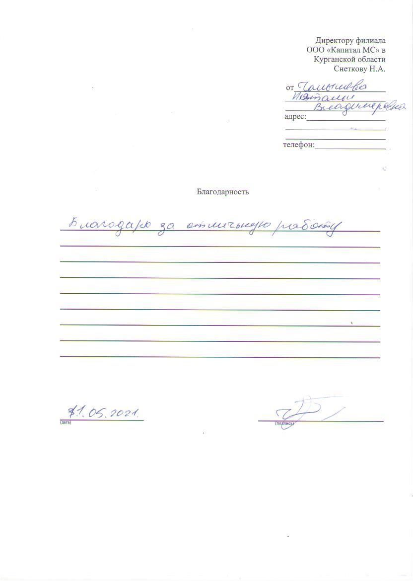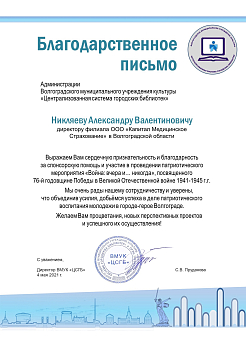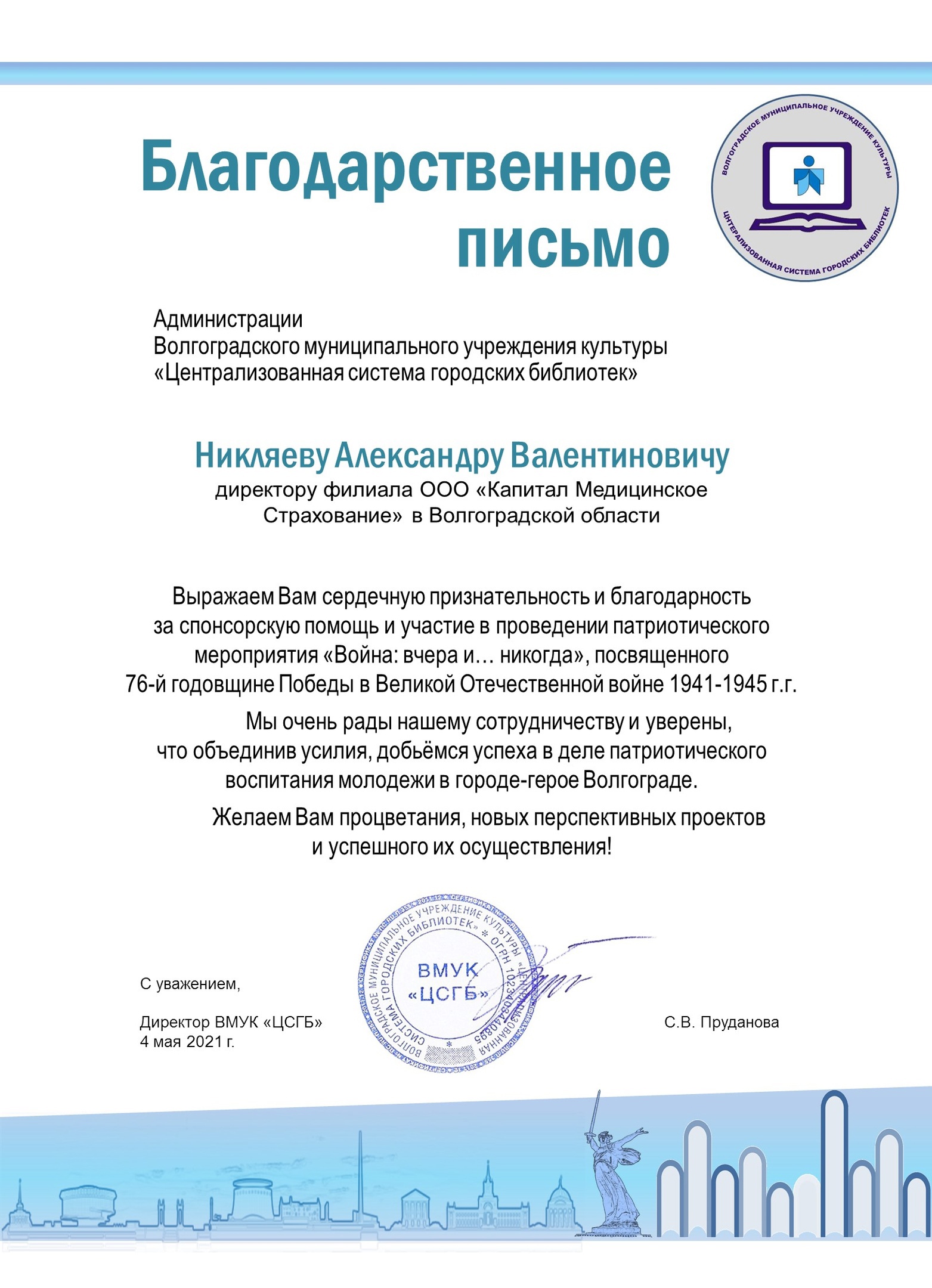 Благодарственное письмо Администрации ВМУК "ЦСГБ"