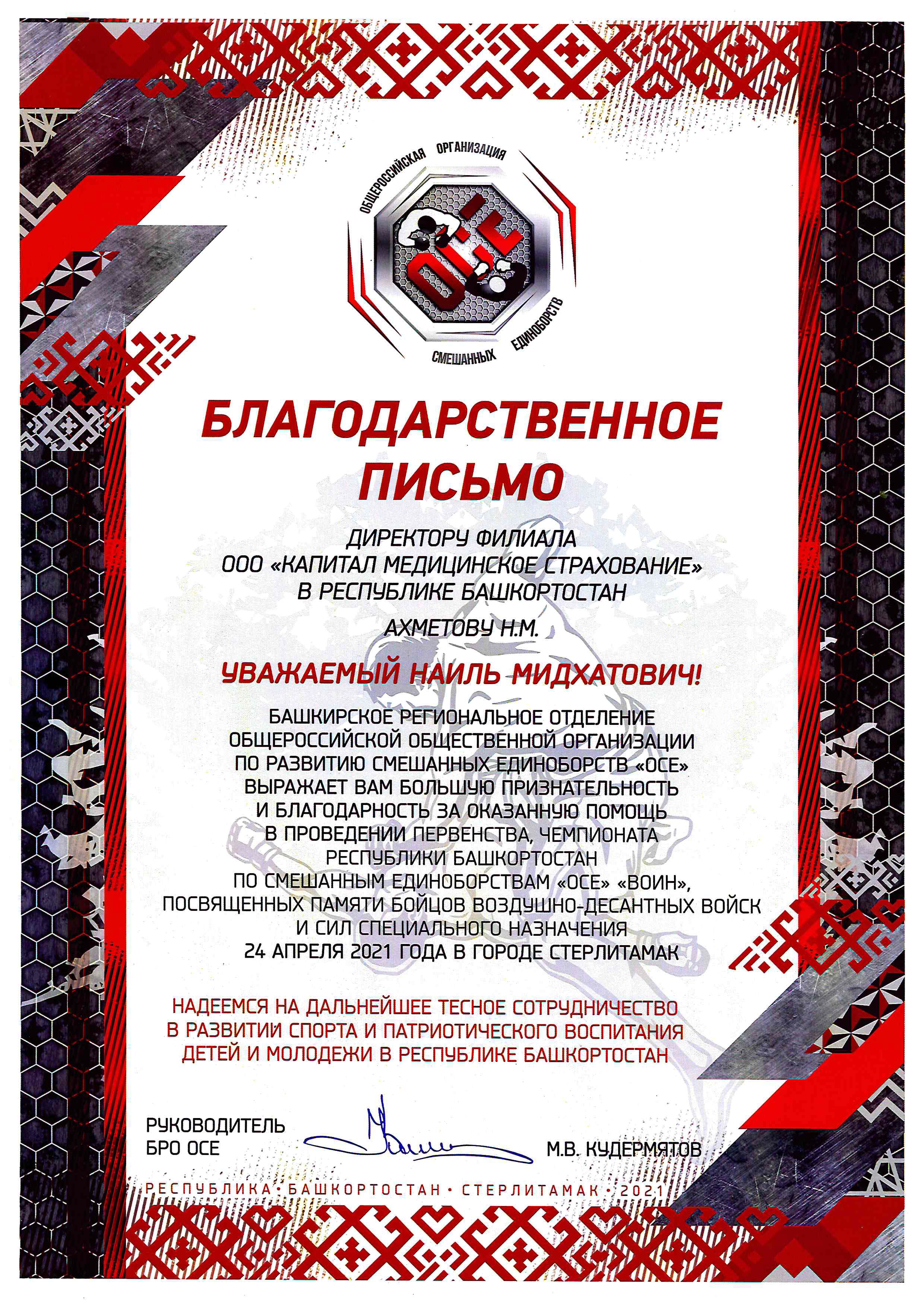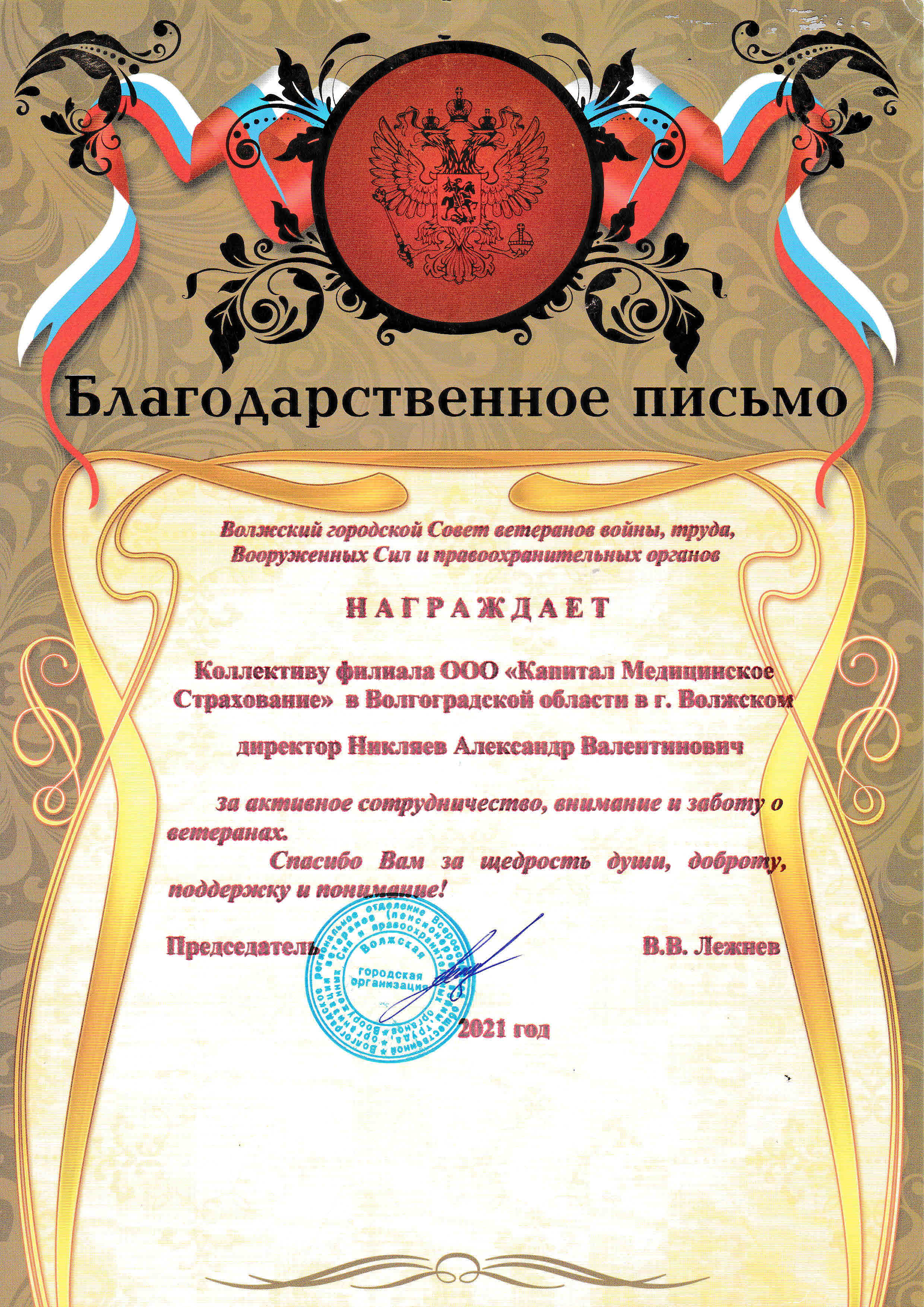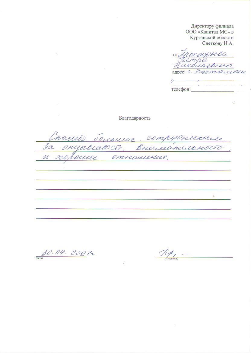 Благодарность Центра лучевой терапии "ЭрСпей"