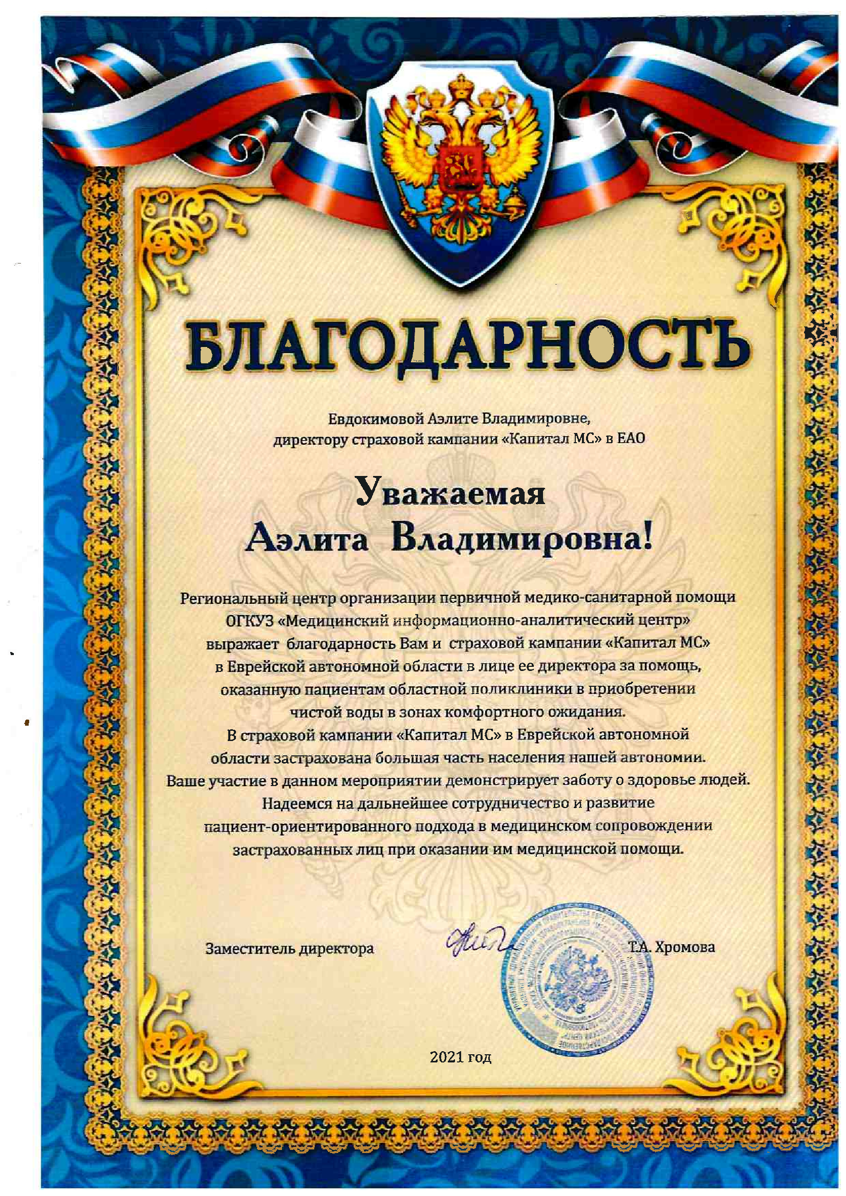 Благодарность Регионального центра организации...