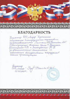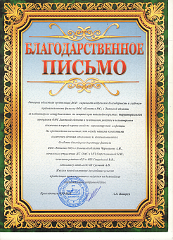 Благодарственное письмо Липецкой областной...