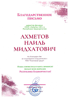 Благодарственное письмо РОО "Позитивная среда"