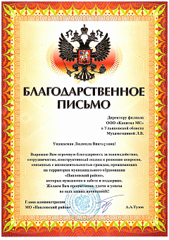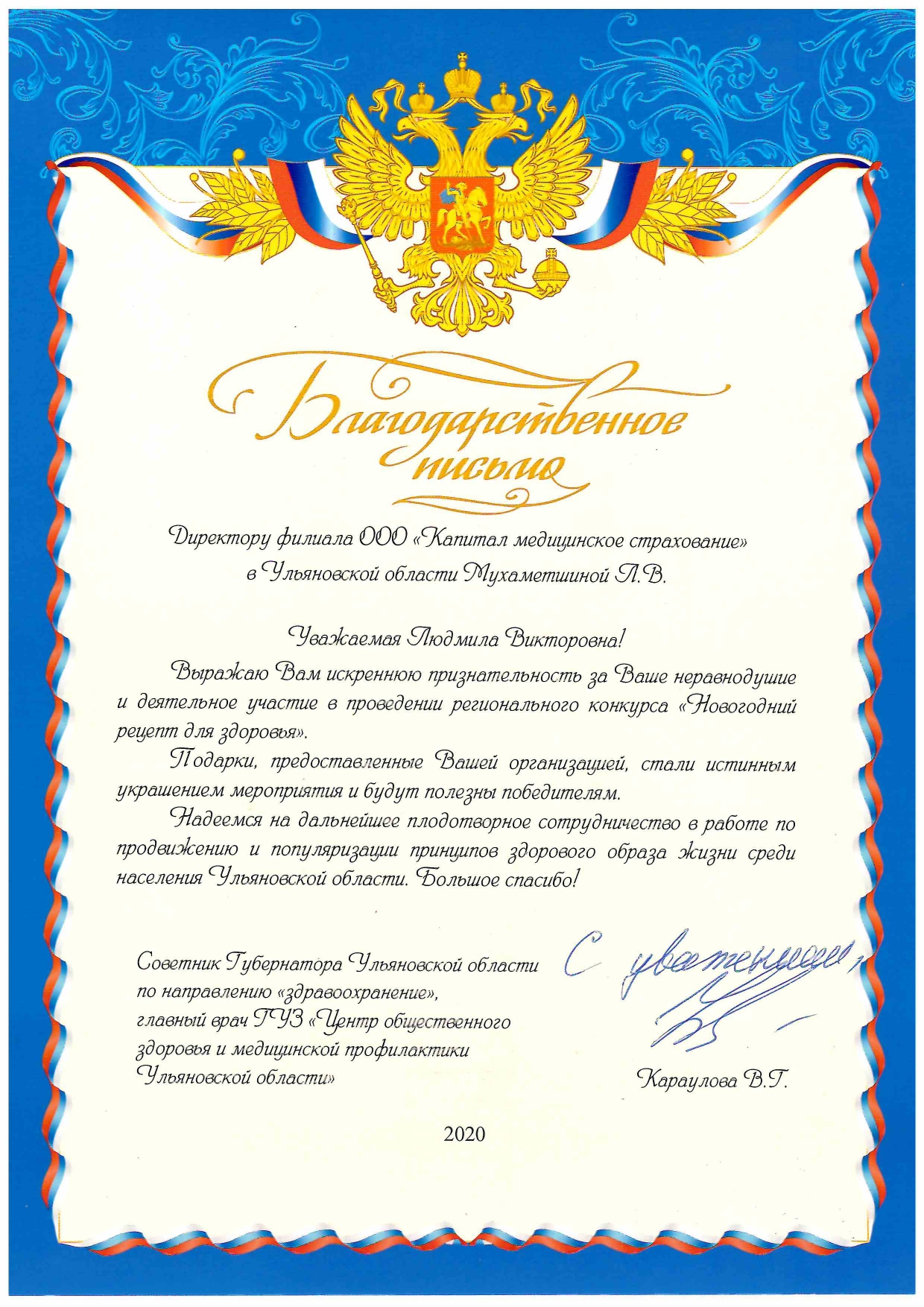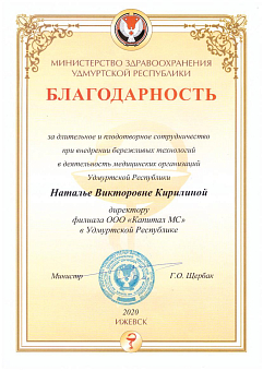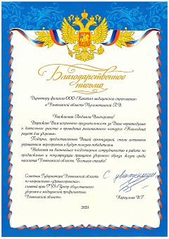 Благодарность ГУЗ "Центр общественного здоровья и...