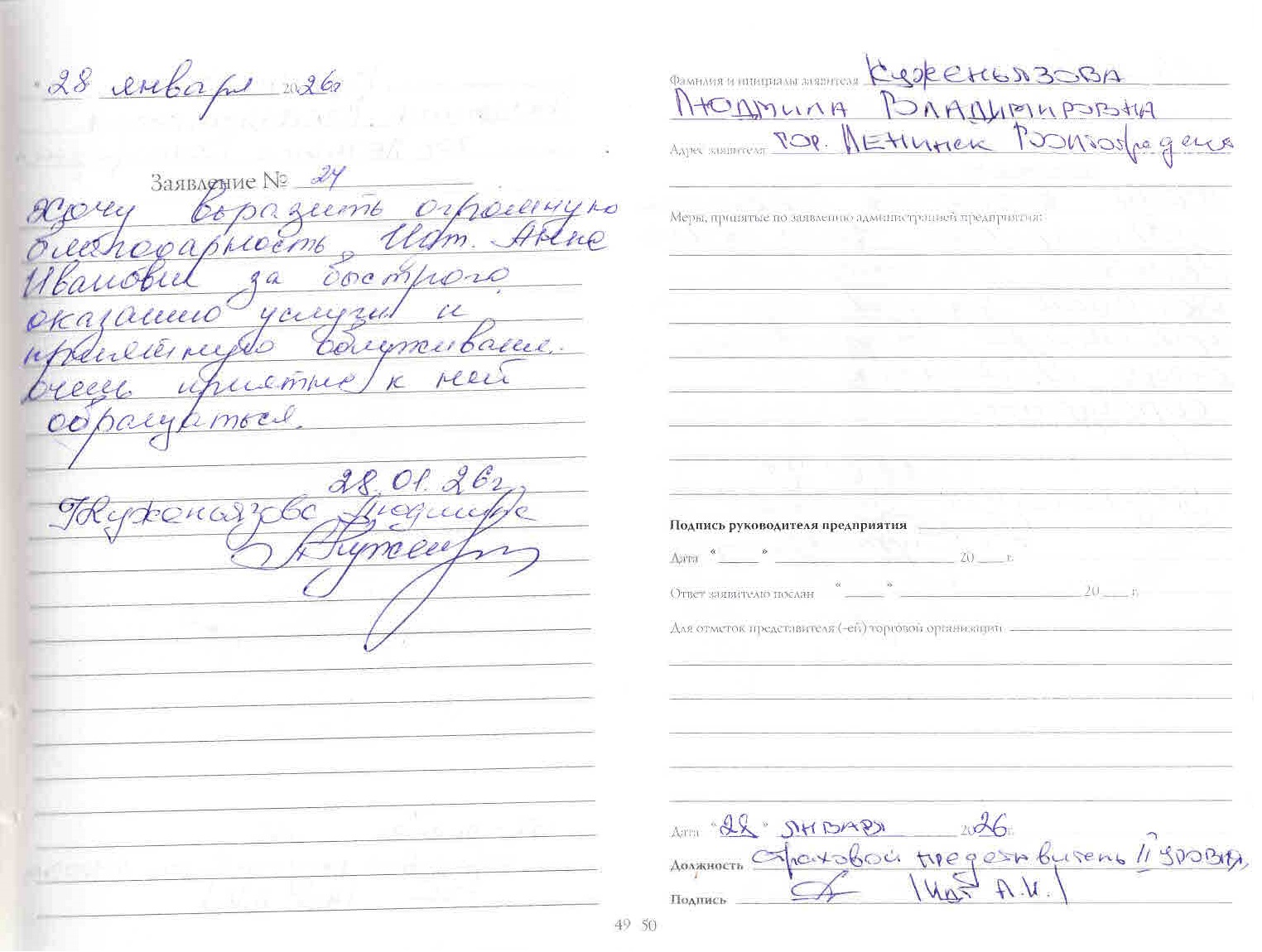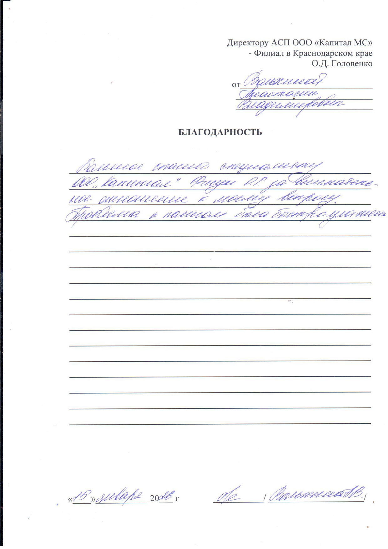 Благодарность Куженьялова Л.В.