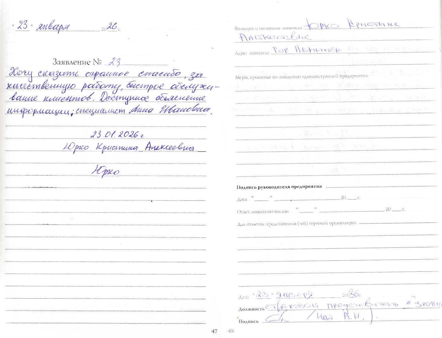 Благодарность Юрко К.А.