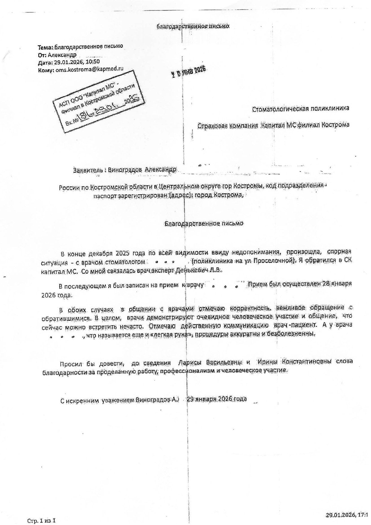 Благодарность Виноградов А.