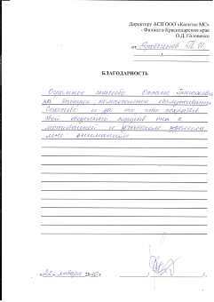 Благодарность Гейман Е.А.