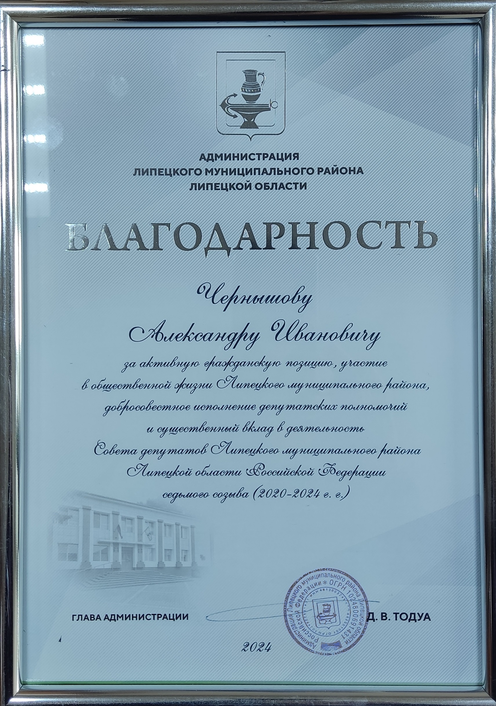 Благодарность Администрации Липецкого...