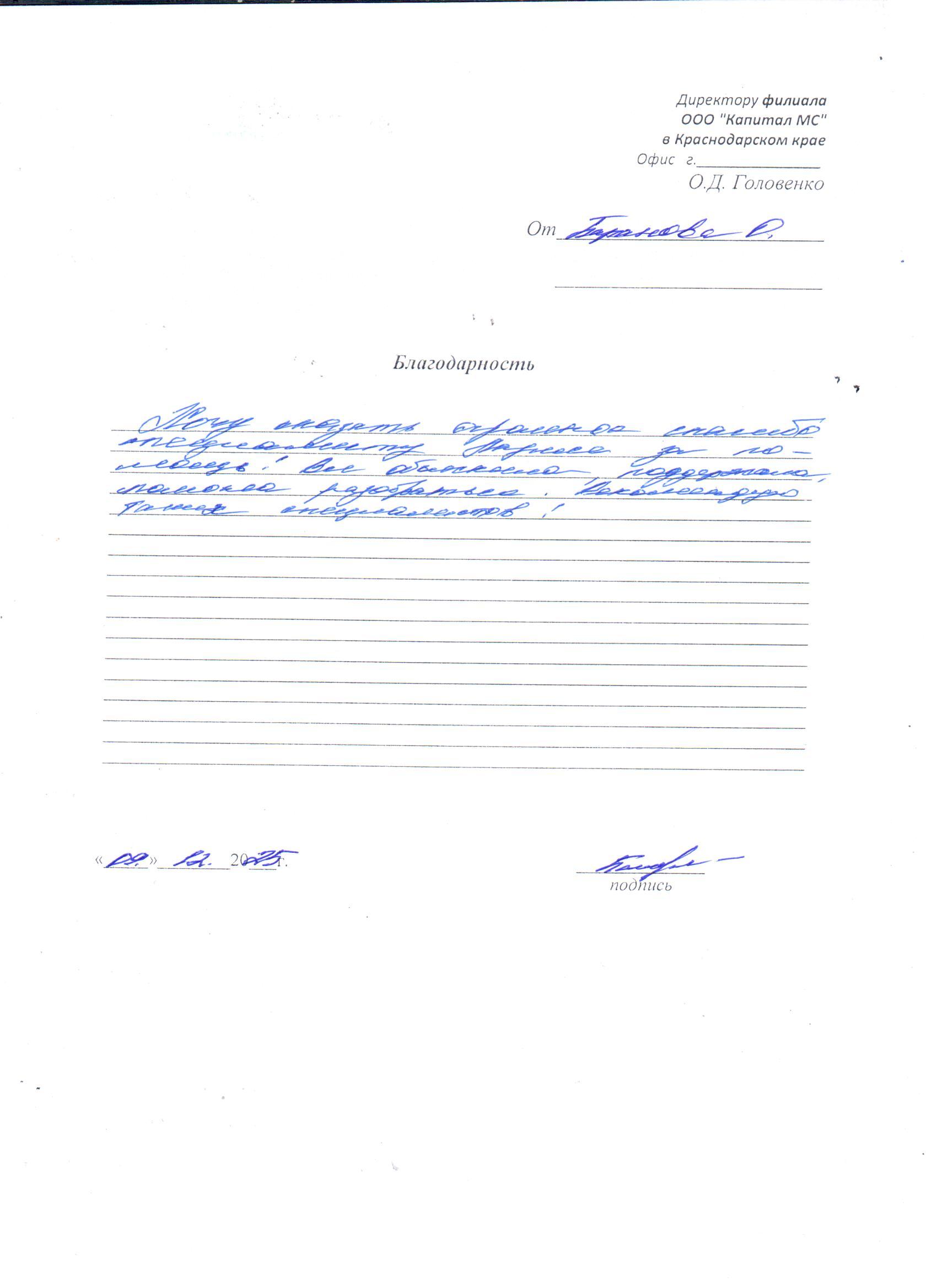 Благодарность Хачатрян А.В.