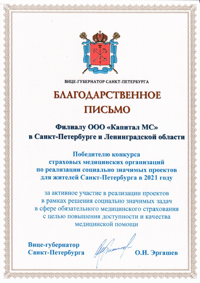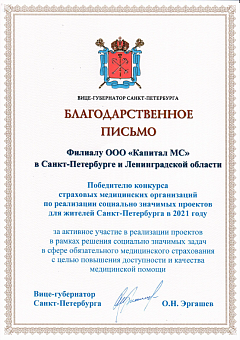 Благодарственное письмо от Вице-губернатора...