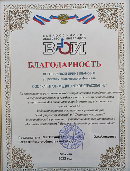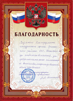 Благодарность от Всероссийского общества...