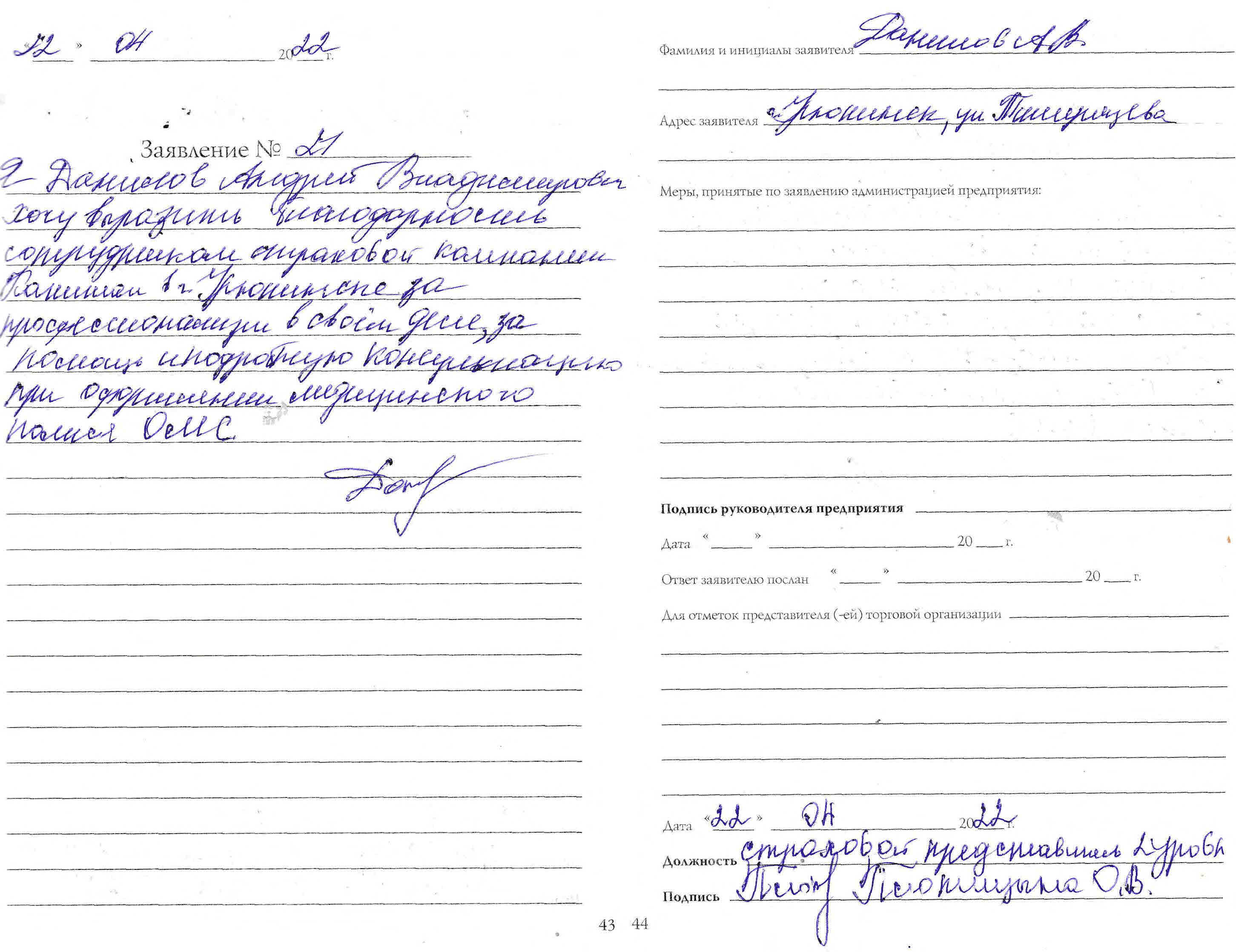 Заявка на полис ОМС